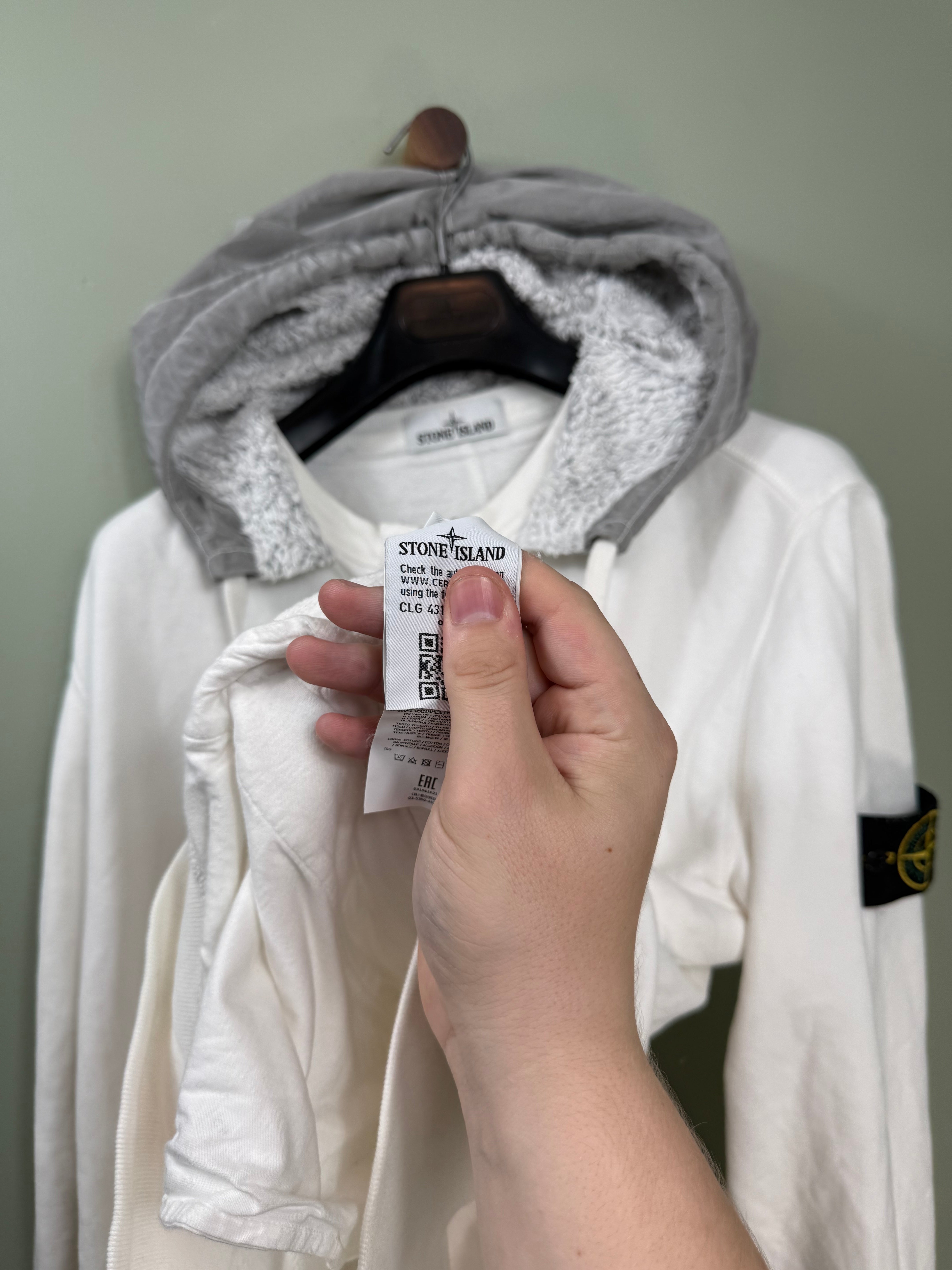 Stone Island White 1/4 Zip Hoodie