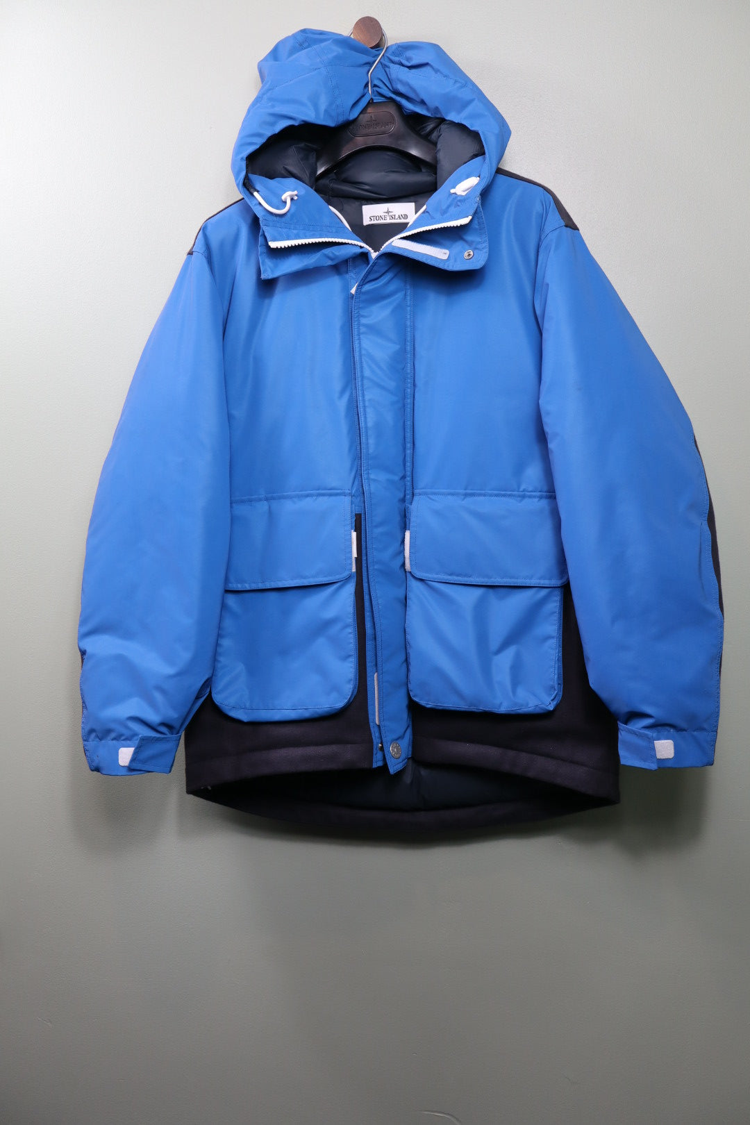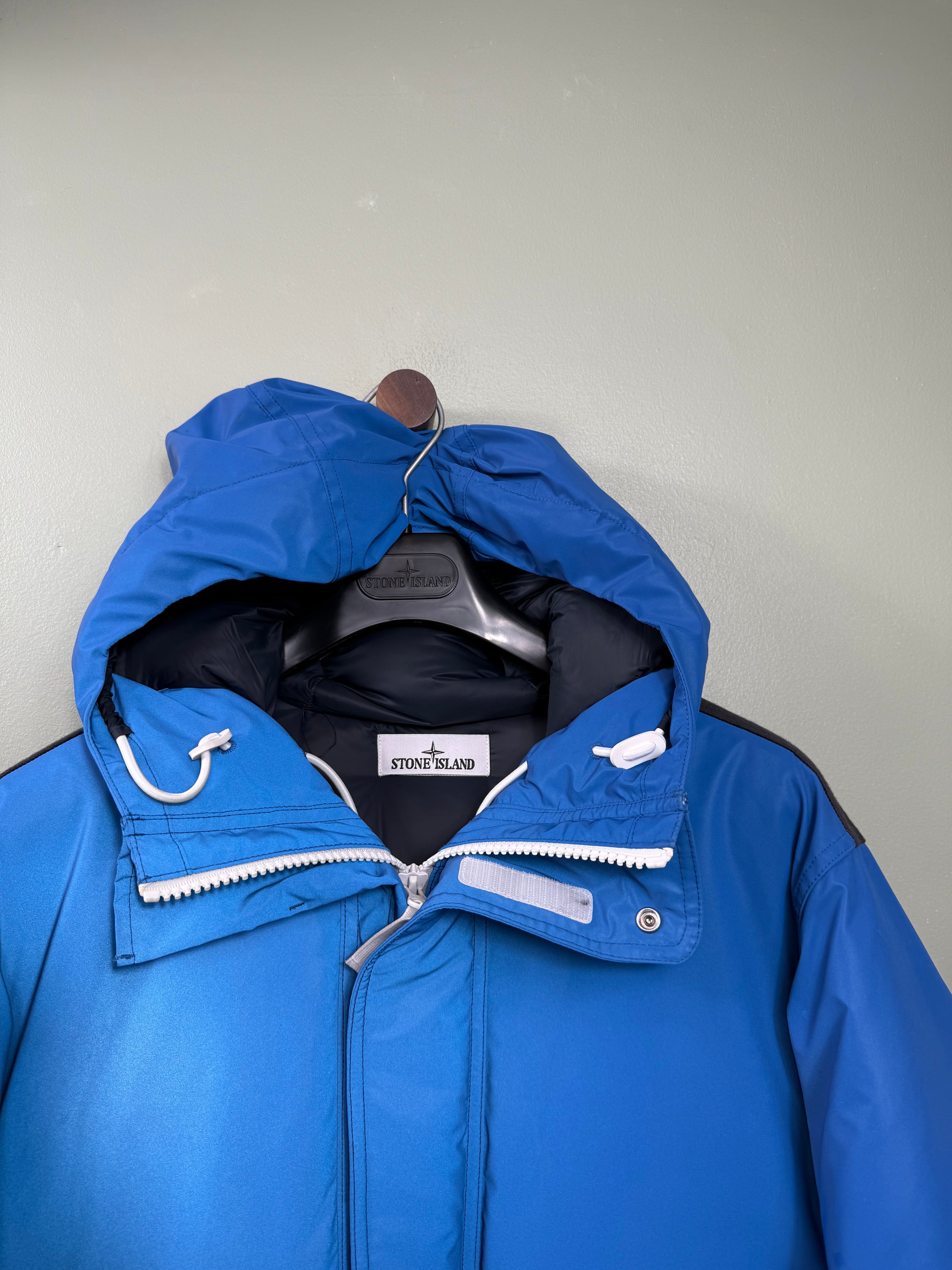 Stone Island Blue Panno Resinato Reflective Marina Down Jacket